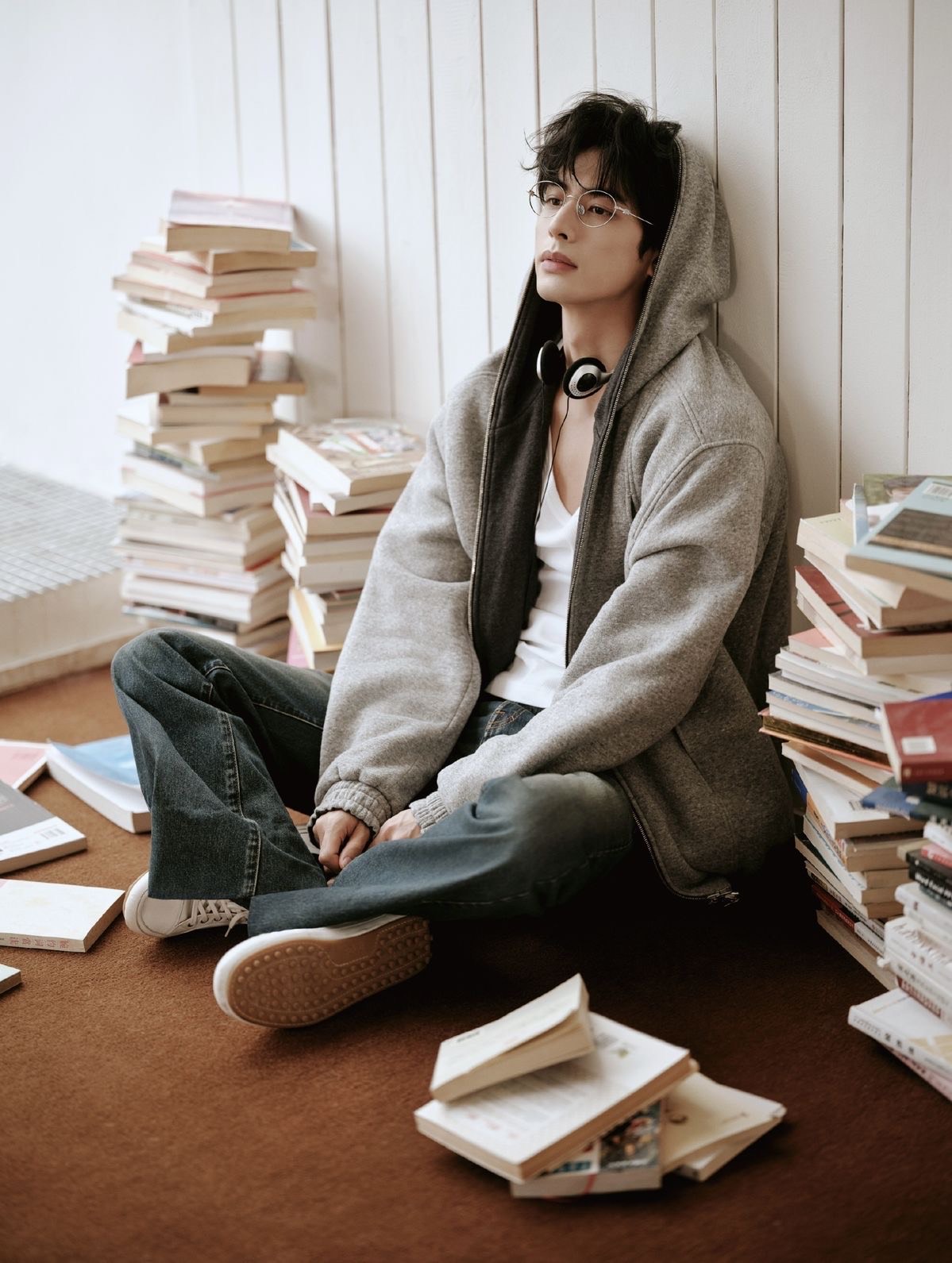 Male vocal, kpop Male solo, kpop, Chill R&B-pop, playful pop, smooth mid-tempo groove, flirtatious teen-friendly vibe, soft plucky synths, light bass, minimal piano, subtle hi-hats, light atmospheric pads, intimate whispery vocals, playful rap/rap-adlibs, relaxed choreography, casual gestures, smile-heavy performance, warm, cozy, fun, confident, lightly flirty, mellow yet catchy, smooth melodic runs, soft evening / late-night energy