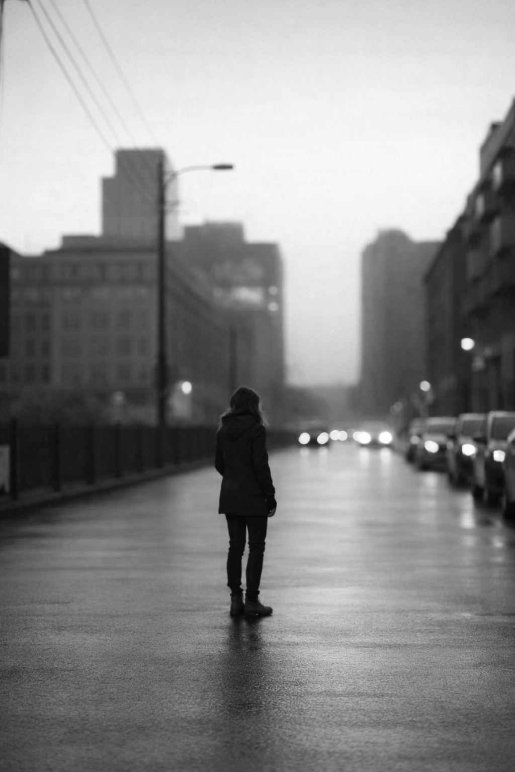 Intimate reflective indie noir, midrange female vocals with natural warmth, lyrics-forward delivery, calm and human, steady tempo with slower phrasing after the chorus, soft piano as emotional anchor, gentle electric guitar textures, minimal percussion, stripped and spacious bridge, unhurried outro with room to breathe, more space between vocal phrases toward the end, quiet strength, compassion, realism, clean studio production, wide stereo depth
