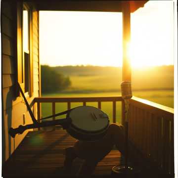 Warm front-porch folk with male vocals, brushed snare and upright bass; banjo leads the groove with bright rolls and simple stomp-clap percussion, Verses stay intimate and close-mic’d, chorus blooms with stacked harmonies and a fiddle answering the vocal, Energy arcs from gentle sway to joyful singalong, then eases back with a soft tag and lingering banjo figure