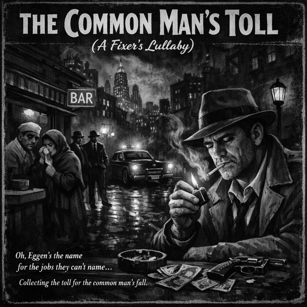 1946 new york city noir jazz swing crooner ballad slow tempo around 72 bpm smoky big band atmosphere with upright bass brushed drums muted trumpet tenor sax vibraphone accents and bluesy piano male crooner vocal with husky tone smooth phrasing introspective but tough like Traditional pop, Jazz, Swing, Big band meets chet baker in a rainy alley harmonic mood in minor key melancholy but cool think latenight jazz club rain outside cigarette smoke curling by the barlight emotional feel regret survival moral grayness oldschool swing rhythm