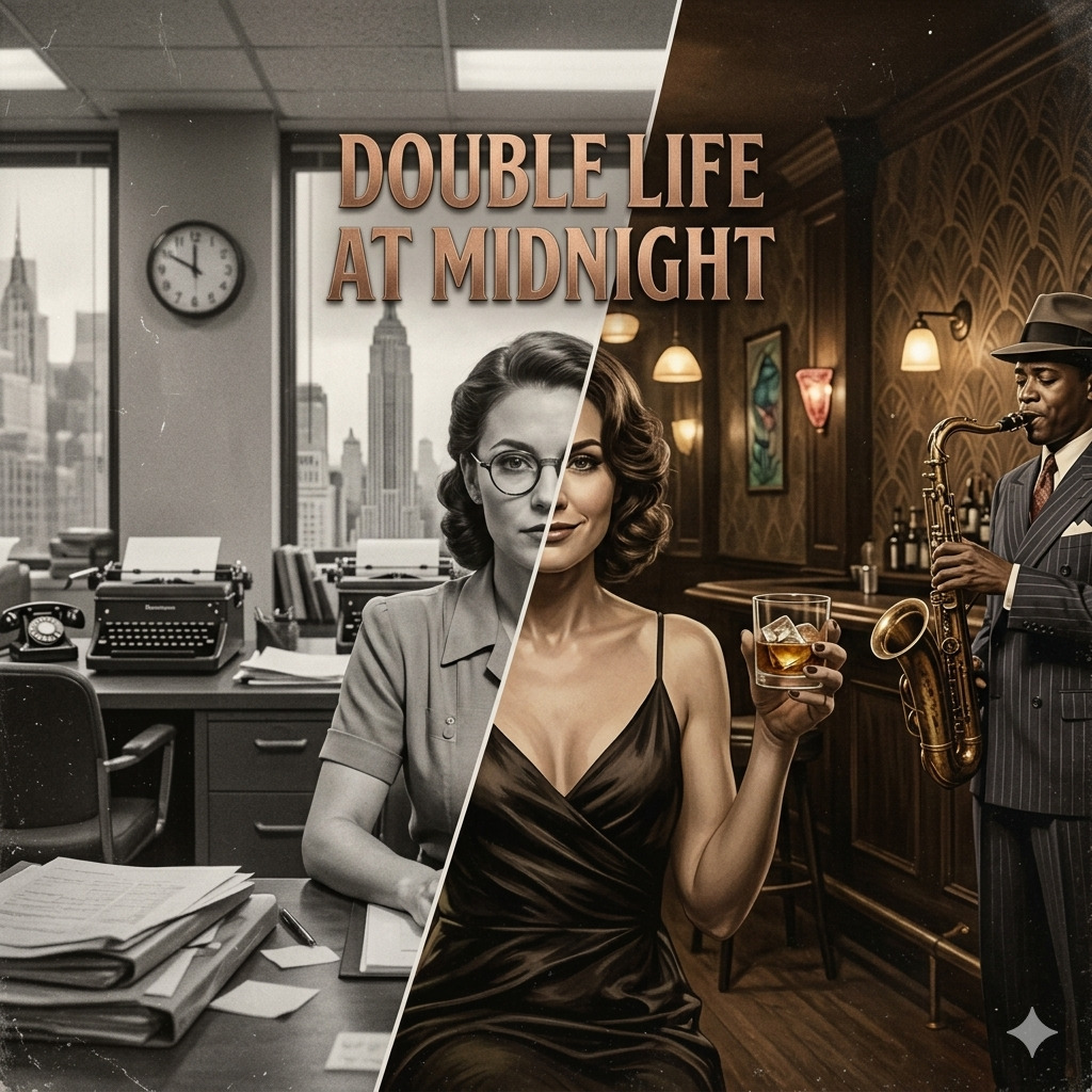 1946 noir dark smooth jazz high quality female sultry vocalist cinematic spoken word upright bass brushed drums smoky tenor saxophone muted trumpet slow tempo intimate atmosphere dramatic building lounge jazz progression classical noir vibe storytelling dynamic rhythm