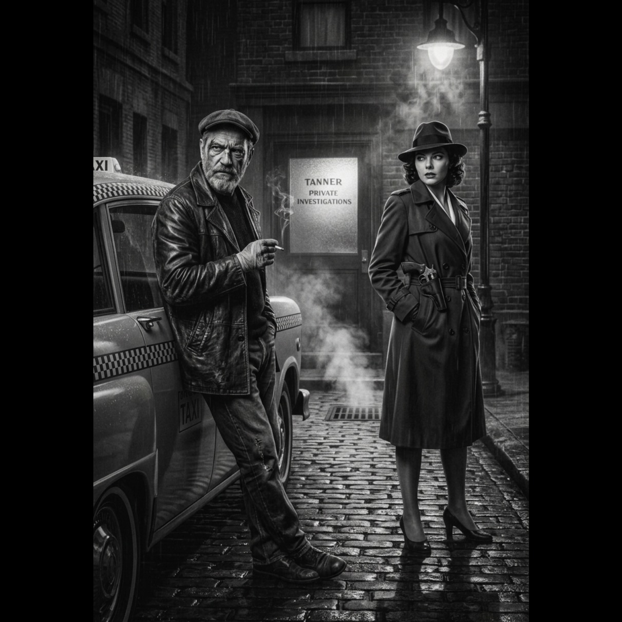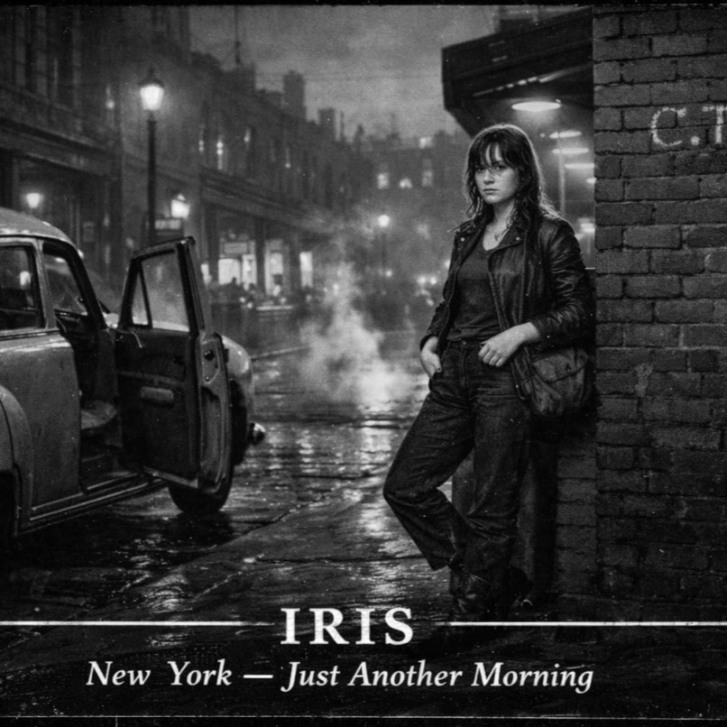 Generate a moody, cinematic vocal performance set in gritty 1946 New York, in the style of 1940s–50s jazz/blues, Use American slang and streetwise phrasing to convey a tough, independent female protagonist navigating dark city nights, Short, punchy lines should capture tension, relief, mistrust, timelessness, anticipation, and trust, Include sensory details: rain on asphalt, neon lights, piano notes, street noises, distant shouts, fleeting human connections, Integrate naturalistic dialogue snippets, Maintain a rhythm for a repeating 4-line chorus evoking safety, freedom, fleeting comfort, Highlight quiet observation, brief intimacy, and self-protection, Keep phrasing lyrical but conversational, cinematic yet raw, letting the listener feel every beat of the night and the character’s inner life