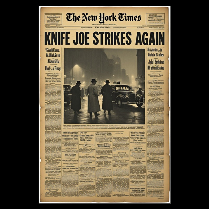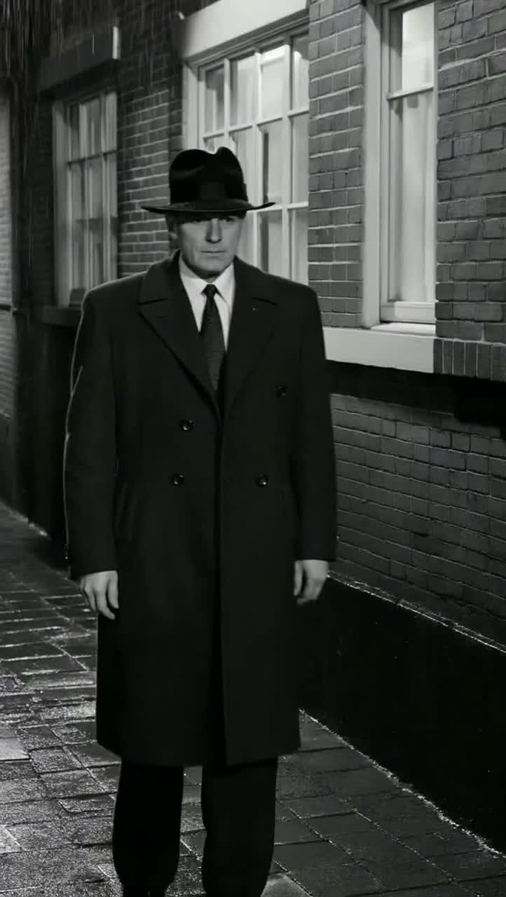 Dark film noir jazz ballad, 1946 New York atmosphere, high-contrast black-and-white cinematic mood, rain-on-asphalt ambience, smoky basement club, muted trumpet, tenor sax lead lines, upright bass, brushed drums, noir piano chords, subtle vibraphone, slow-to-mid tempo, minor key, intimate crooner vocal with spoken-word noir monologue phrasing, vintage mono warmth, tape saturation, light room reverb, suspenseful and bittersweet, no modern synths, no bright pop production, no heavy guitars