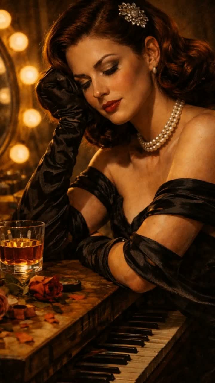 Solo female singer with a warm smoky alto voice, Intimate and emotionally expressive delivery inspired by 1940s torch singers, Slightly behind the beat phrasing, gentle vibrato, breathy tone, subtle blues inflections, She sings quietly but intensely, addressing the audience in an intimate conversation, Each lyric line is deliberate and reflective, emphasizing heartbreak, resilience, sad, virtuoso, Setting: Intimate, cinematic film-noir atmosphere, Bittersweet, reflective, quietly humorous but emotionally sharp, A song that begins playful and observational, then slowly