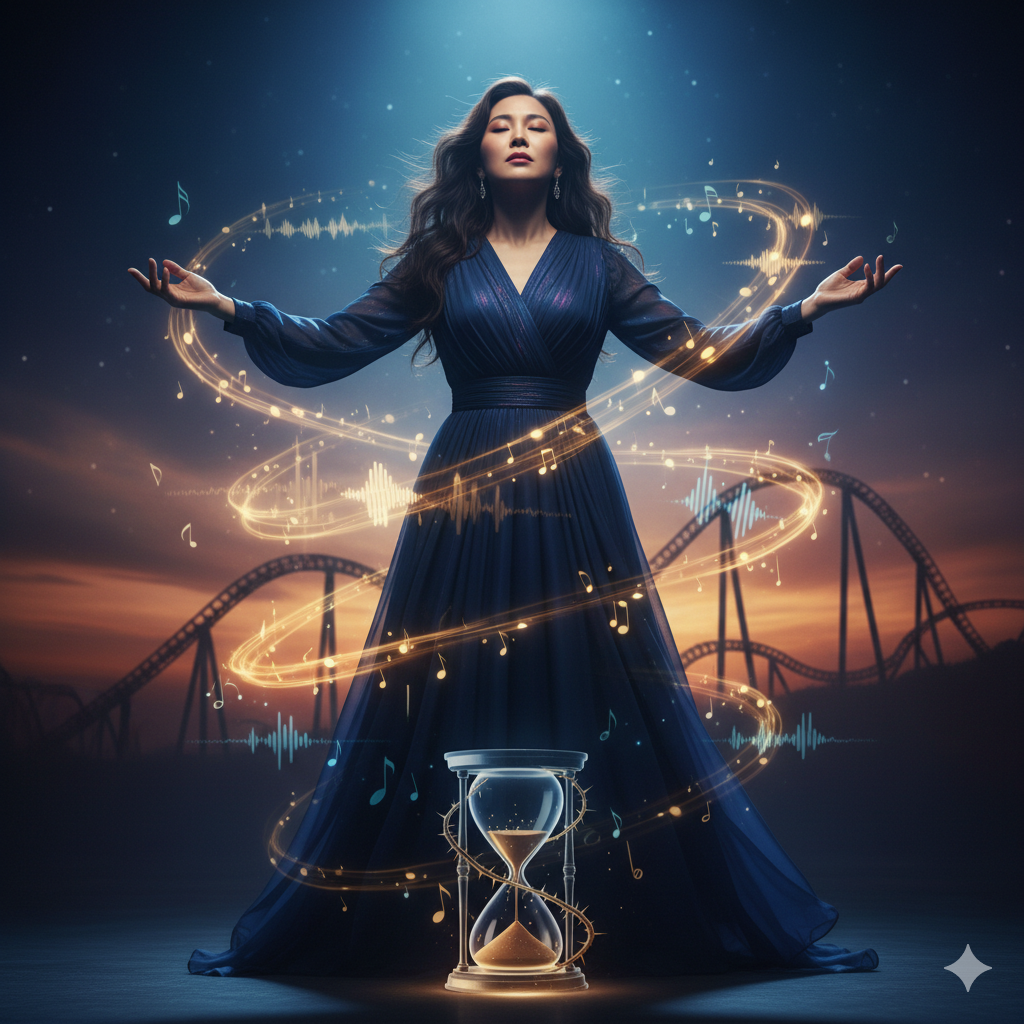 Ultra high-fidelity orchestral–gospel fusion track with natural 한영 vocals, for maximum emotional expression and clear pronunciation, Tempo: 65–70 BPM, slow, cinematic, expressive, with dramatic emotional arcs, Instrumentation: cinematic strings, deep brass, full gospel choir, radiant pads, piano, acoustic guitar, subtle electronic pulses, precise sub-bass, harp glimmers, choral swells, Dynamics: extreme range, large crescendos, deep emotional drops, smooth transitions, sacred and life-affirming, from intimate whispers to soaring climaxes, Vocal: crystal-clear female lead, natural 한영 phrasing, perfect pitch, maximum emotion, extended sustain, wide vibrato, flawless breath control, smooth head-voice transitions, soaring high notes, expressive phrasing, clear pronunciation, Mix: stadium-scale depth, tight low-end, bright top-end, immersive stereo, sharp transients, harmonic richness, long reverb, capturing full vocal emotion and instrumental grandeur