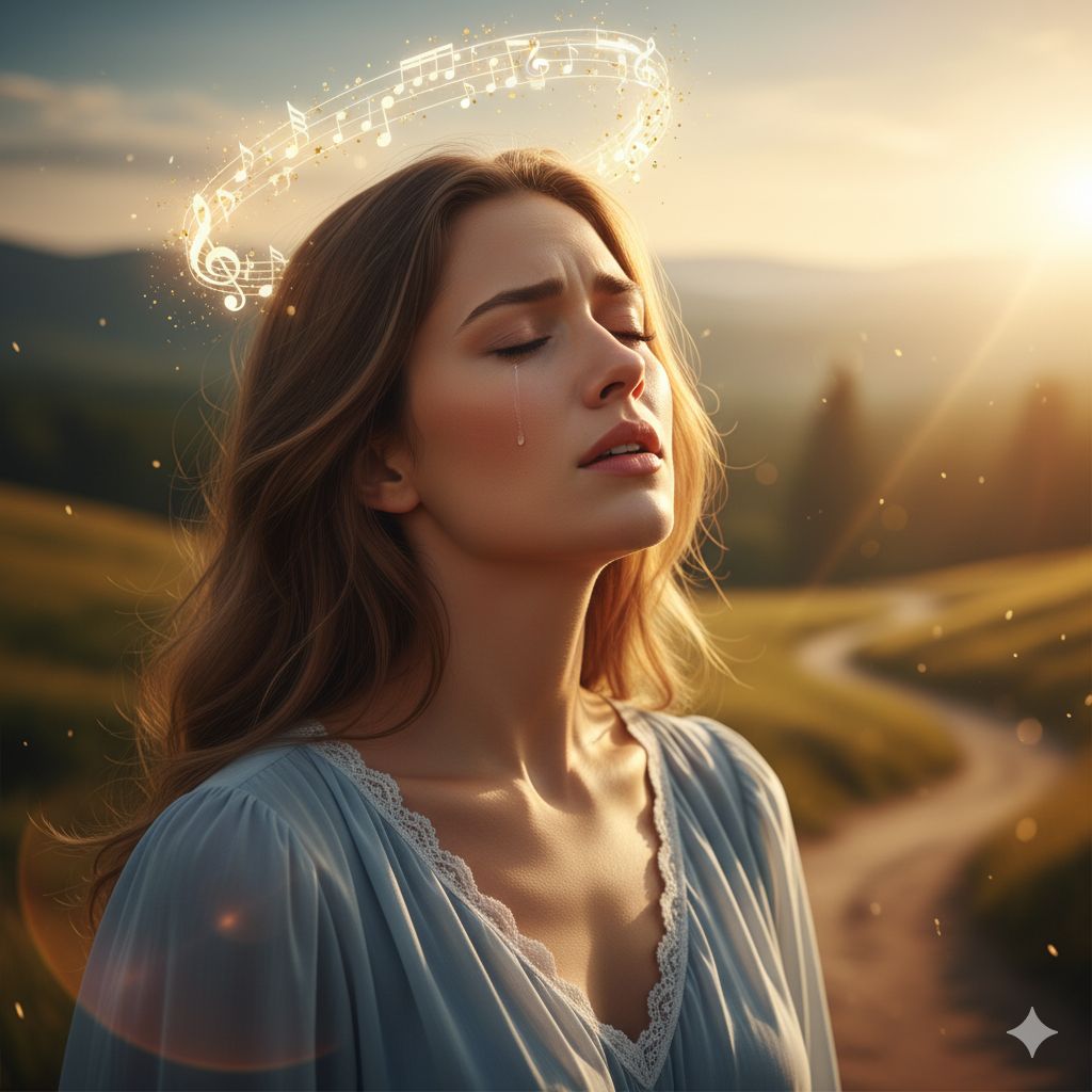 Style: serious, reflective, powerful, highlighting musical message and emotion, maximizing listener immersion