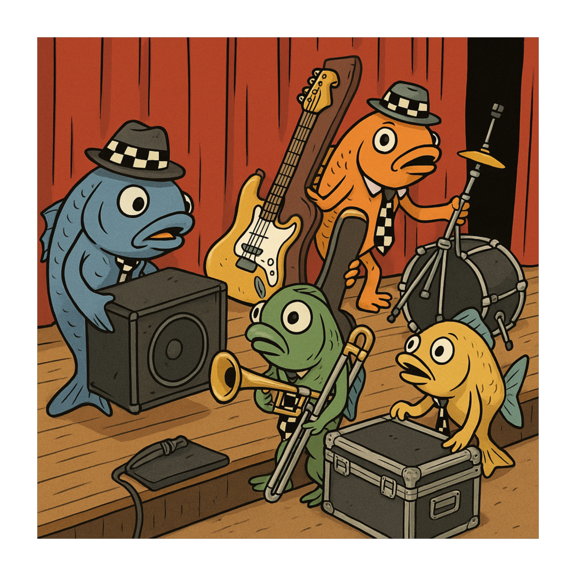 90s ska punk, third wave ska, upstroke guitar, walking bassline, bright horn section (trombone, trumpet, saxophone), energetic male vocalist, Orange County ska, two-tone revival, bouncing rhythm, staccato brass hits, punk energy, upbeat tempo 160 BPM, Hammond organ accents, raspy voice