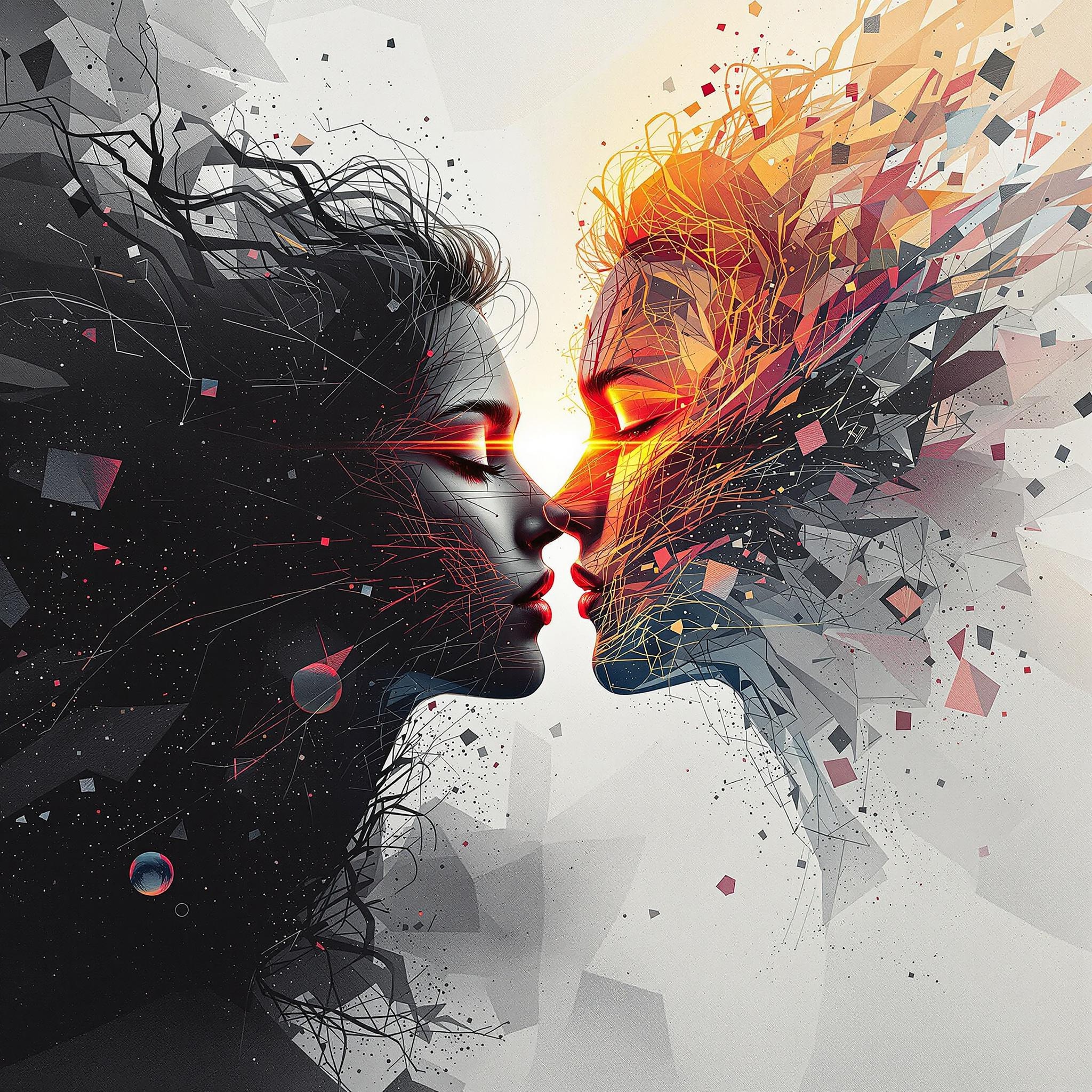 Operatic Duet, Female singer rich deep understones, male singer deep melodic voice, harmonic, cello echoes vocal melody, orchestra reflects vocals, timpani roll, wow, diva, soaring, emotional, throaty, ‑choir