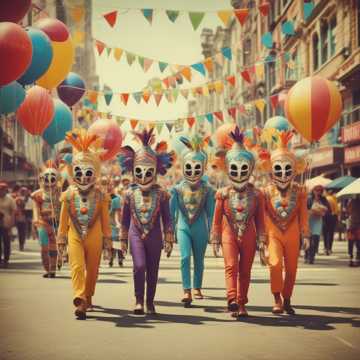 Carnaval, feest, polonaise, bossa nova, hoempapa, clownerie, fun, multiple voices conversation rap, rhythmic claps, techno, double bass kicks, professional polished live stage recording, DJ's mixing, rolling hi-hats, back chorus