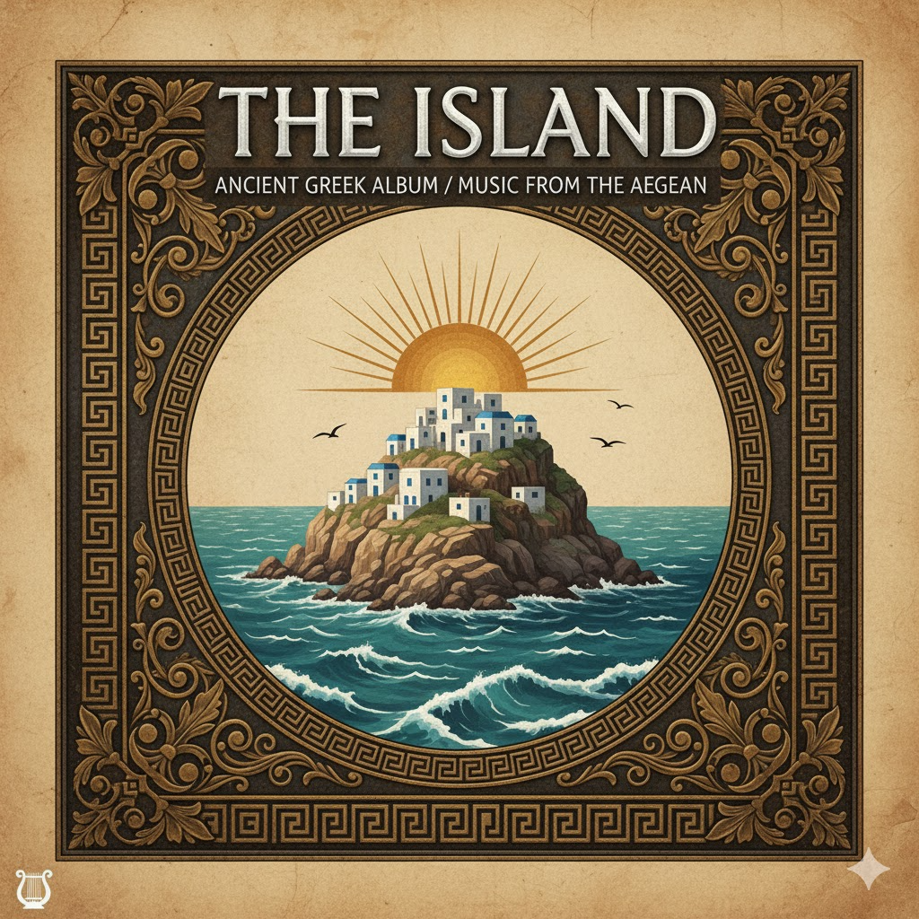 A solo ancient Greek lyre piece opens with delicate, plucked strings that introduce a modal melody, The texture remains sparse, leaving generous space between phrases, and occasional harp-like flourishes accent transitions between sections, Natural room reverb highlights the instrument’s overtones