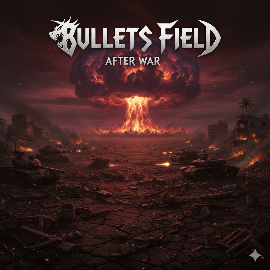 The song opens with layered battlefield ambience: the whir of helicopters panning left to right, distant bomb blasts rumbling beneath sharp bursts of machine gun fire
