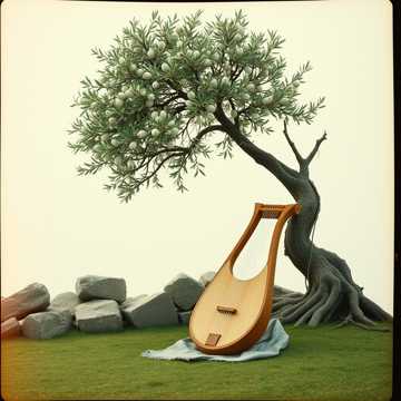 A solo ancient Greek lyre piece opens with delicate, plucked strings that introduce a modal melody, The texture remains sparse, leaving generous space between phrases, and occasional harp-like flourishes accent transitions between sections, Natural room reverb highlights the instrument’s overtones, with lead guitar and violin