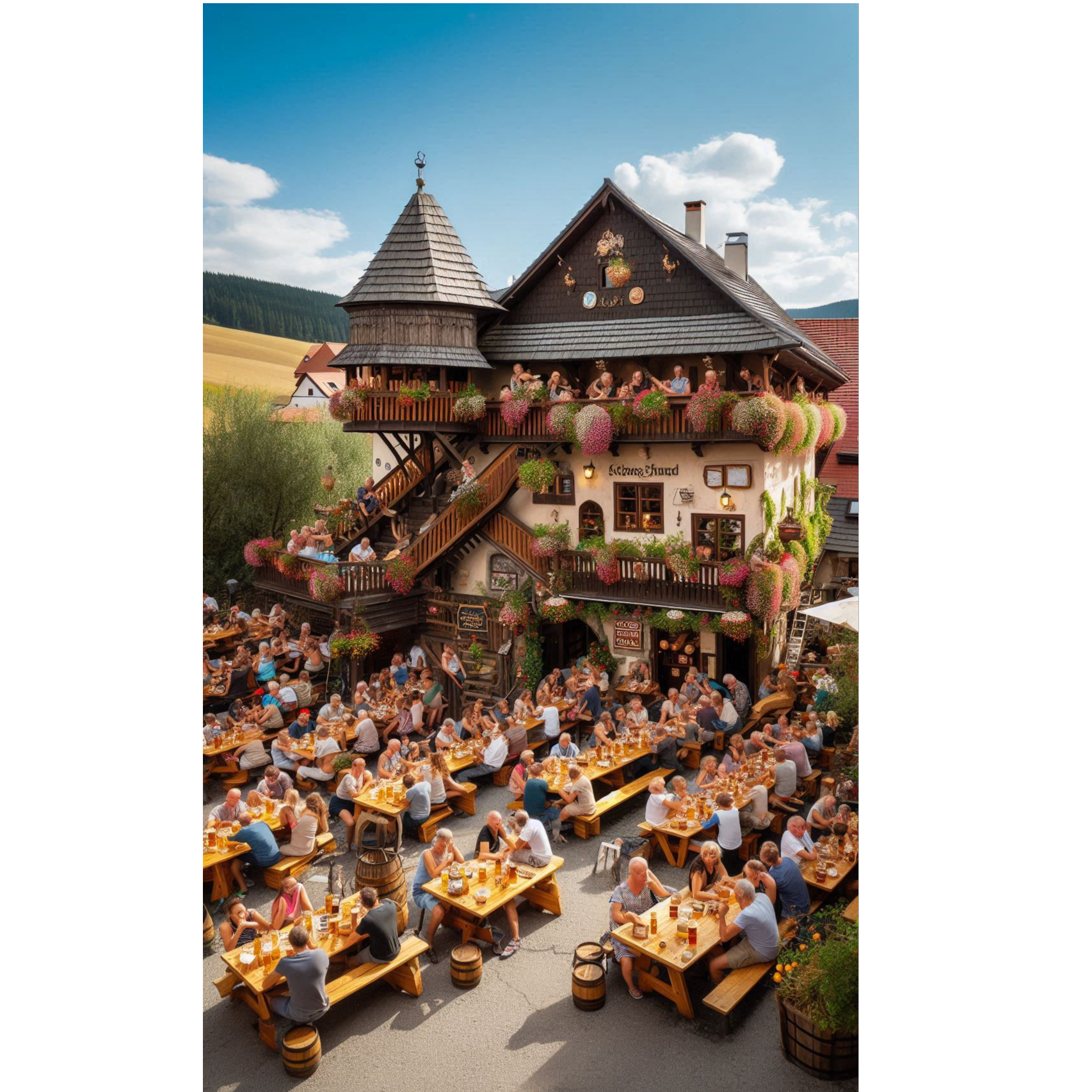 Create music with a lightly cabaret, chanson, and folk-rock vibe that combines rhythmic guitar, accordion and basting spoon, The style should be humorous, slightly ironic, and narrative, featuring a simple, catchy melody and a strong rhythm suitable for singing stories with humorous lyrics, The atmosphere should be friendly and lively, The music should convey playfulness and joy in storytelling, with occasional subtle dramatic passages during the "calling out" parts, The rhythm should be moderately upbeat but not hectic, allowing space for clarity and emphasis on the lyrics, The song should suit solo vocals with clear enunciation and expressive delivery, accompanied by a simple instrumental backing