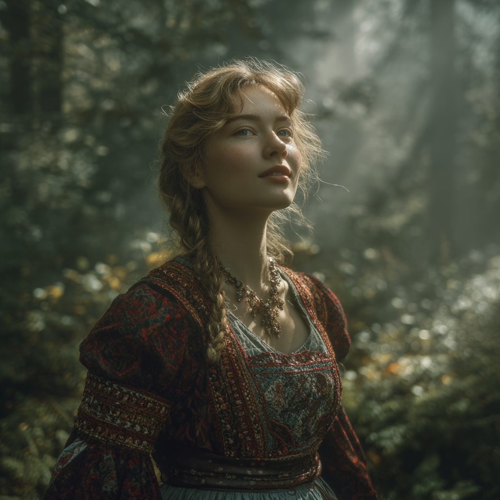 Heroic fantasy symphonic metal, cinematic orchestral intro, ethereal female vocals, soft choir and harp opening, slow emotional build, evolving into epic symphonic metal, powerful drums, wide guitars, dramatic choir, emotional verses, soaring choruses, crescendo structure, cinematic storytelling, dark fantasy atmosphere, clean production, dynamic contrast, emotional intensity, epic finale, Song length: 4 to 4, 5 minutes