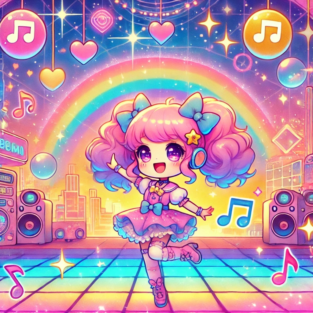 French House, Bubblegum Pop, Funky, Catchy, Groovy, Melodic, Upbeat, Retro, Disco Vibes, Female Vocals, Kawaii Female Voice, Filtered Synths, Electric Guitar, Danceable, Bright, Vibrant, Japanese Voca