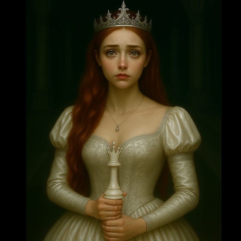 Create a modern, emotional Disney-style ballad, The song starts with soft piano and intimate, fragile vocals, gradually building with subtle strings and atmospheric synths, It evolves into a powerful, cinematic pop ballad with warm piano chords, emotional strings, soft organic drums, and spacious, modern production, The vocals should be soulful, raw, and dynamic, fragile in the verses and soaring in the choruses, similar to a timeless Disney soundtrack but with a mature, empowering feel, The lyrics tell a story of inner struggle between good and evil, self-doubt and courage, choosing your own path, Metaphors like shadows, crowns, villains, and heroines appear, leading to the empowering hook: "You choose your crown, " The mood is dramatic, emotional, and empowering, combining Disney magic with a modern pop sound