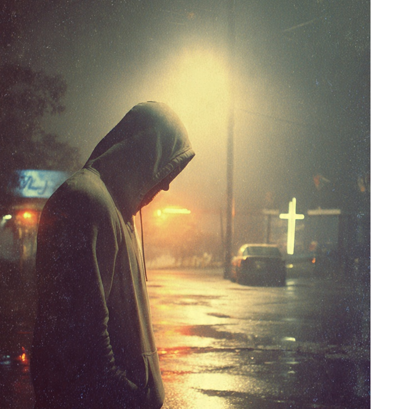 Early 2010s-inspired emo-trap fusion, hazy atmospheric trap beat with a subtle metallic post-grunge guitar riff layered in, slow hypnotic tempo around 140 BPM, deep rumbling 808 bass, crisp trap snares cutting through, auto-tuned emotional white male rap-singing with soft whispery ad-libs and falsetto harmonies, dark reverb-drenched production full of melancholy and haze, themes of inner darkness, late-night highs and lows, feelings of being an outsider or loner, emotional struggles and raw vulnerability mixed with quiet bravado