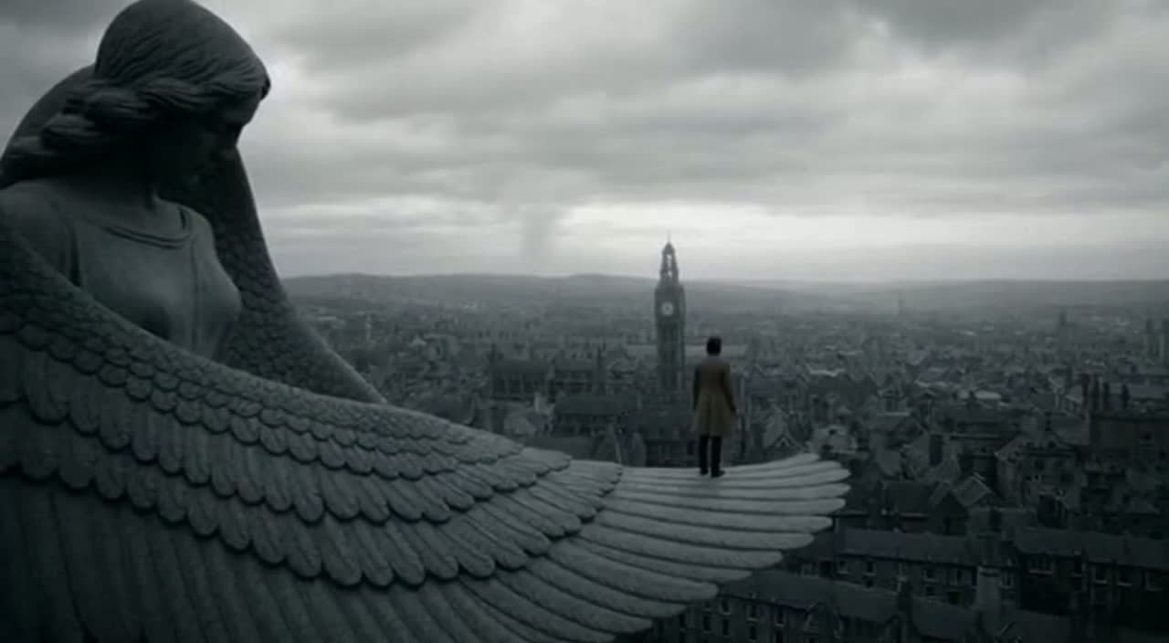 Steady-tempo alternative rock in the vein of early-90s, no rubato and no tempo fluctuation, emotionally restrained and observational, intensity built through constant pulse and vocal register shift, verses delivered in grounded chest voice, chorus opening through controlled falsetto without dynamic swell, minimalistic and cinematic, time held in place by delayed guitar patterns rather than rhythmic variation, instrumentation continues throughout with no dropouts, no intentional quiet sections, and no vocals-only passages at any point