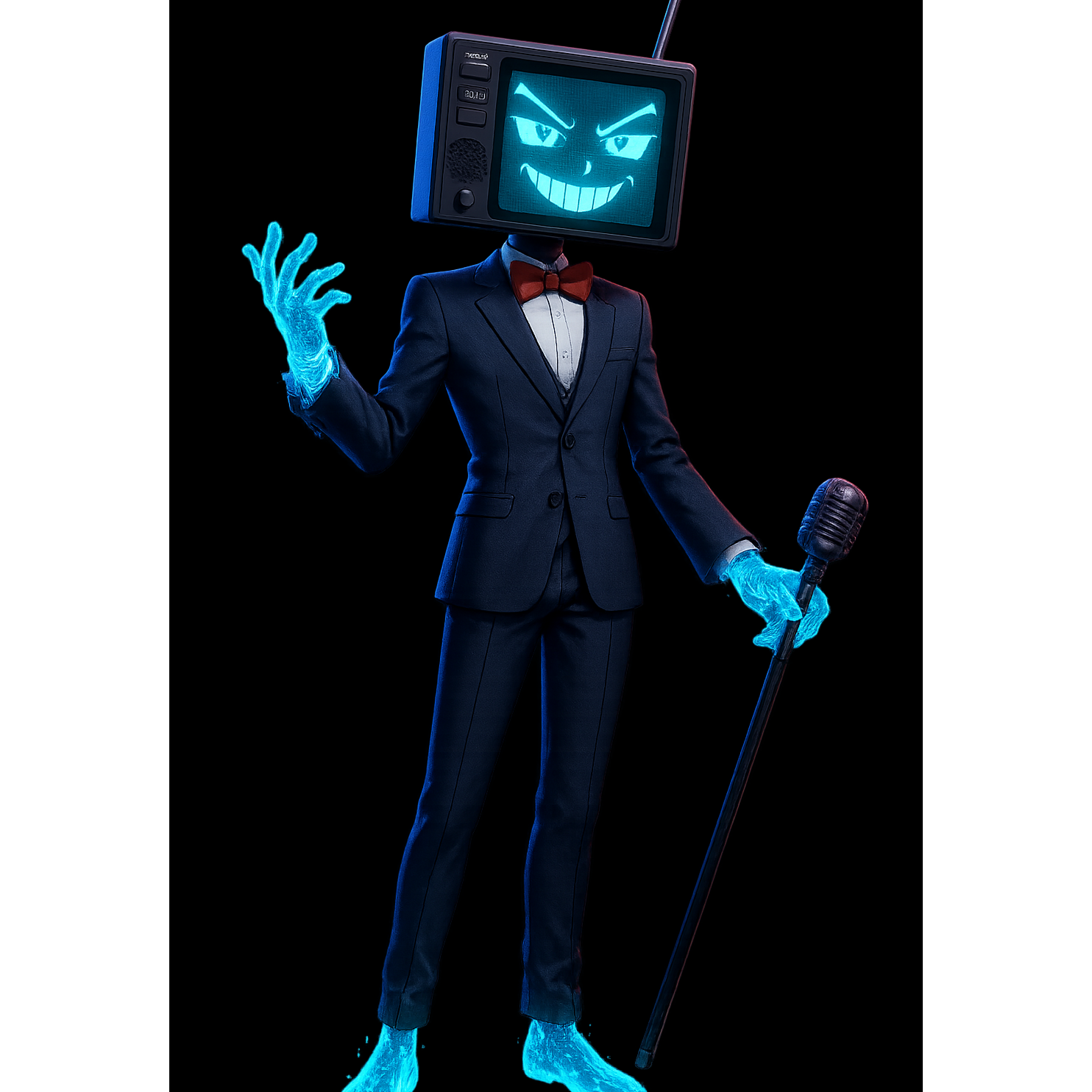 Male voice with the tone of a 1930s–1940s radio announcer, Cheerful, fast-talking, slightly nasal and theatrical, but with a darkly sarcastic undertone, Add vintage microphone coloration, mild radio static, subtle tape hiss, and a grainy old broadcast effect, The delivery should feel playful, witty, and overconfident, like a mischievous show host who is both charming and unnerving, lo-fi, rolling bassline, rock, techno, hip hop, funky bass, southern trap, piano, rebana, requiem, rap hiphop, bpm 88, melódica, synthwave adventure, singing, slow sad, folk guitar, upright bass, melodic choruses, animé, entrainant, dark ballad, deathcore, string orchestra, dark rnb
