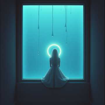Minimal music, melancholic, ambient pad, Performance with only synth and TR-808, A female vocalist singing with an air of ennui, as if exhaling, Rain sound effects and percussion, This is a song about the blues on Wednesdays