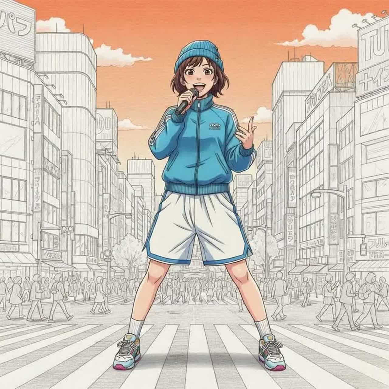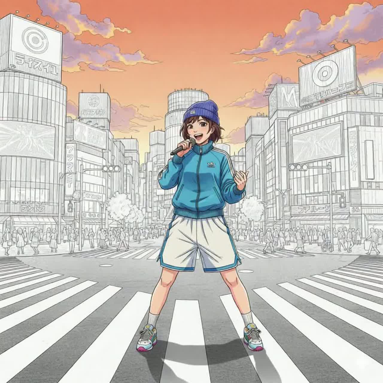 This song's key is A major, breakbeat, nostalgic, britpop, guitar pop, power pop, 90's british rock vibes, kawaii and clean female vocals "ano's style", medium-fast tempo, britpop, psychedelic, downbeat with TR-808 drums and reverb snare, Twin TR-808 kits, one TR-808 lays down a solid beat throughout the entire track, another TR-808 lays down breakbeat rhythms, Tabla-driven rhythmic compositions, featuring hypnotic hand-played tabla and TR-808 patterns as the primary groove, glockenspiel, xylophone and marimba repeat catchy and rhythmic loops, These three instruments form polyrhythms, building momentum for the breakbeat, uplifting, 90s rock, Catchy song melody, This is a song o admiration for "blue in blue-san"