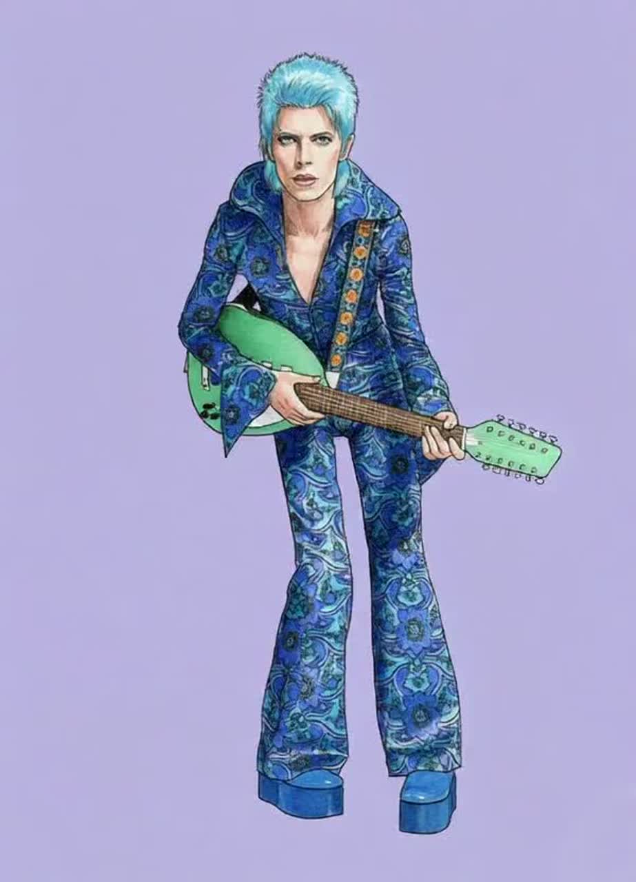 This song's key is "A major", breakbeat, aggressive, nostalgic, britpop, guitar pop, power pop, 90's british rock vibes, a male baritone vocals *David Bowie's style*, medium-fast tempo, psychedelic, downbeat with TR-808 drums and reverb snare, Twin TR-808 kits, one TR-808 lays down a solid beat throughout the entire track, another TR-808 lays down breakbeat rhythms, Tabla-driven rhythmic compositions, featuring hypnotic hand-played tabla and TR-808 patterns as the primary groove, uplifting, 90s rock, Catchy song melody, This is a song of admiration for "blue in blue-san"