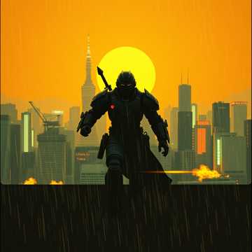 Epic Showa-era tokusatsu theme / Japanese rock / heroic brass orchestra / energetic electric guitar / powerful drums / marching rhythm / dramatic strings / anime opening vibe, A high-energy Japanese rock anthem with a driving tempo of 140 BPM in the key of A minor, The instrumentation features a prominent electric guitar riff, a powerful bassline, and a dynamic drum kit providing a strong rhythmic foundation, The lead vocals are delivered by a male singer with a clear, heroic tone, often accompanied by a male chorus for added impact, The song structure is verse-chorus based, with instrumental breaks that showcase the guitar, Production elements include a bright, forward mix with a slight reverb on the vocals and a punchy compression on the drums, The melody is memorable and anthemic, designed for singalongs, The guitar solo is melodic and technically proficient, fitting the heroic theme, Japanese rock, anime theme, high-energy
