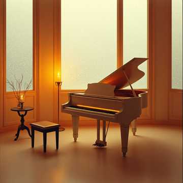 Slow Christmas Piano, Solo Piano, Neo-Classical, Satie-esque, Gentle, Melodic, Relaxing, Reverb, Warm Tone, Sentimental, Dinner Music, 60 BPM