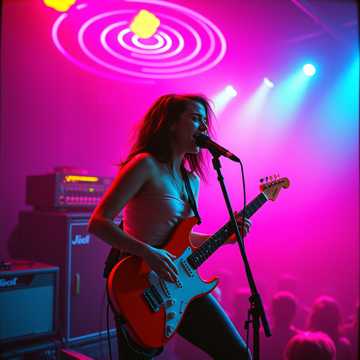INDIE-ROCK-PUNK energic și exploziv, voce feminină puternică și rebelă, fundal cu synth electric modern și atmosferic, bass distorsionat și chitară electrică crunchy cu riff-uri rapide, beat intens de tobe cu influențe punk, sound raw garage rock combinat cu indie modern, atmosferă festival-ready, plină de energie și atitudine