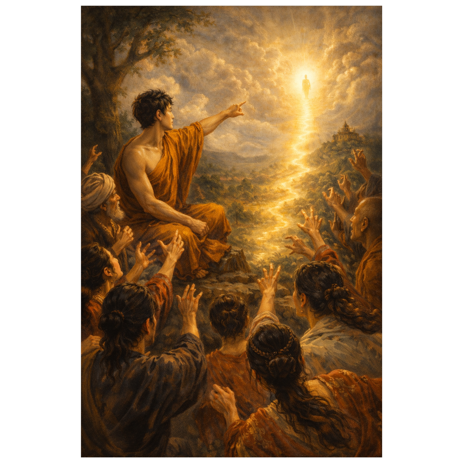Light as awareness and presence, Positive, modern Buddhist vibe (Buddha as a guide, not a god), Overall mood: