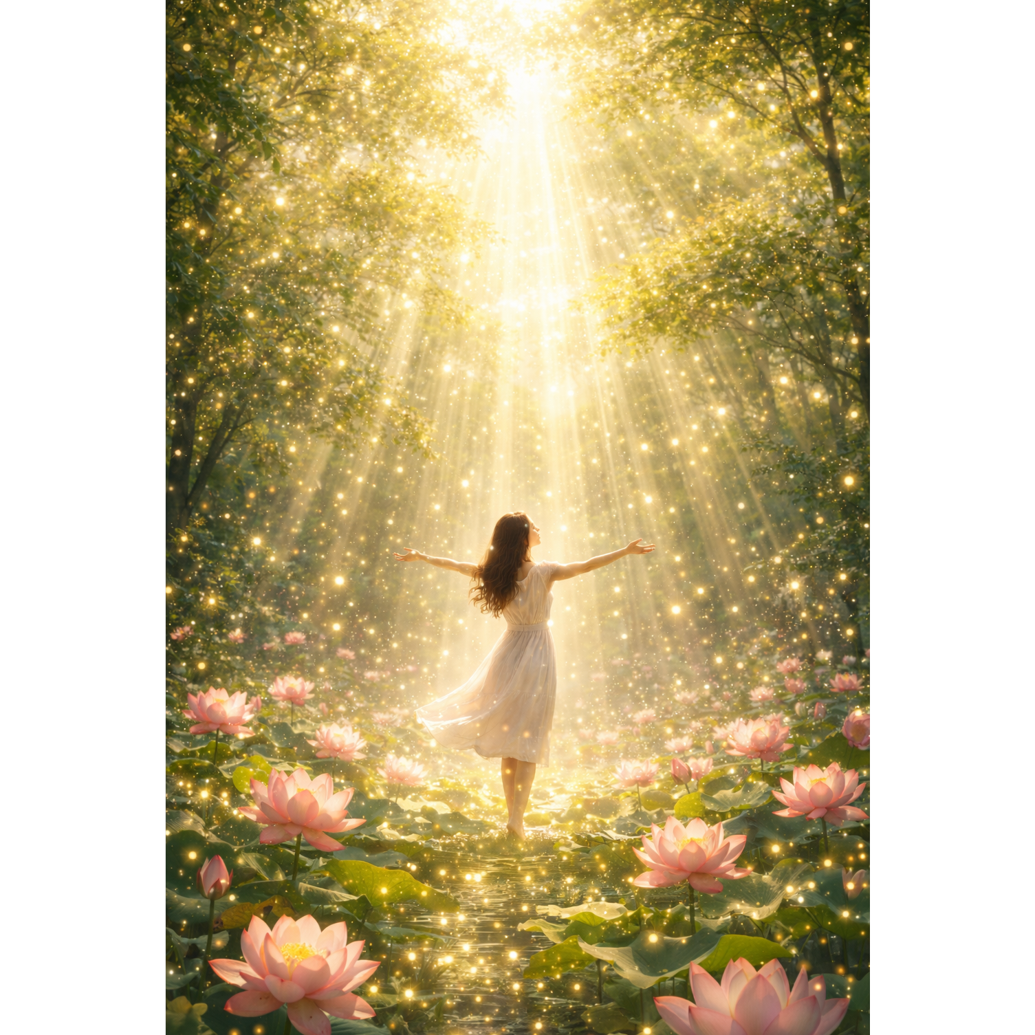 Female lead vocal with a slightly childlike, cute, and soft voice, Boy Vocals, Girl Vocals, Euphonium, Harpsichord, Double Bass, Harp, Orchestra, Ethereal, Gospel, Bright, uplifting pop song with a joyful groove, Theme: light as awareness and presence, Positive, modern Buddhist vibe (Buddha as a guide, not a god), Catchy chorus, clapping-friendly, warm and hopeful, English lyrics, clear vocals, energetic but gentle