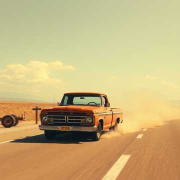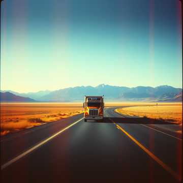 aggressive rock-country metal, heavy guitars, diesel and chrome, roaring truck, burning highway, bright lights, powerful male vocals, southern metal, outlaw energy