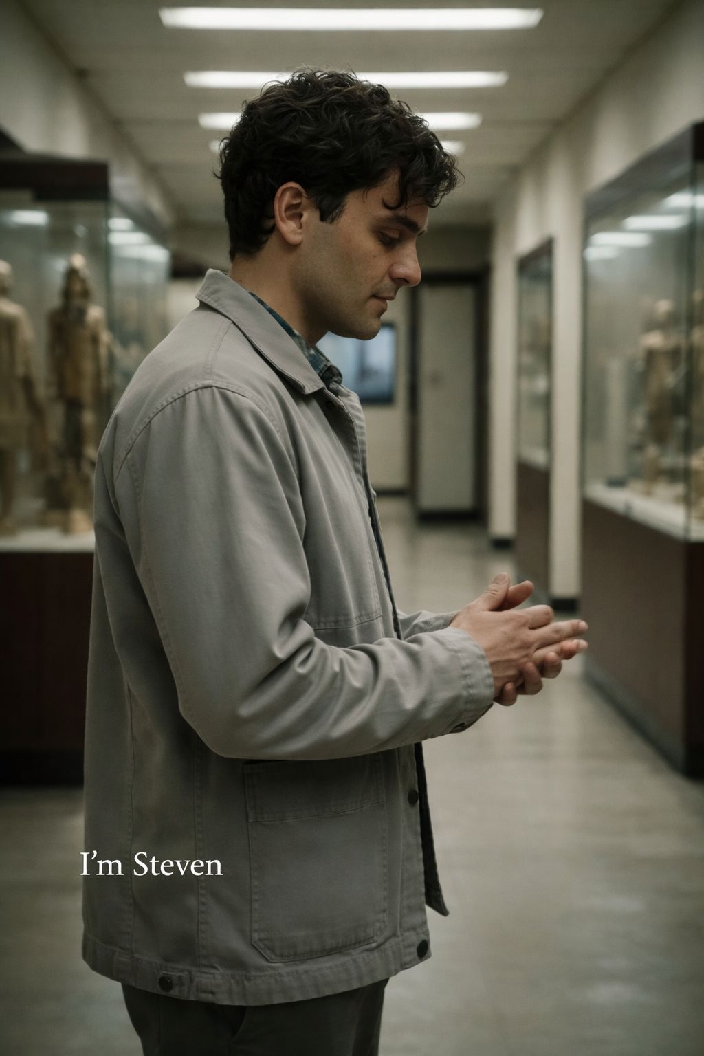 Male vocal, calm and polite but emotionally distant, Soft delivery with controlled phrasing, No belting, no dramatic emphasis, no vocal theatrics, Tone feels practiced, rehearsed, and slightly detached, Occasional breath or hesitation allowed, but quickly corrected, Voice sounds like someone explaining things to stay grounded, No harmonies, no backing vocals