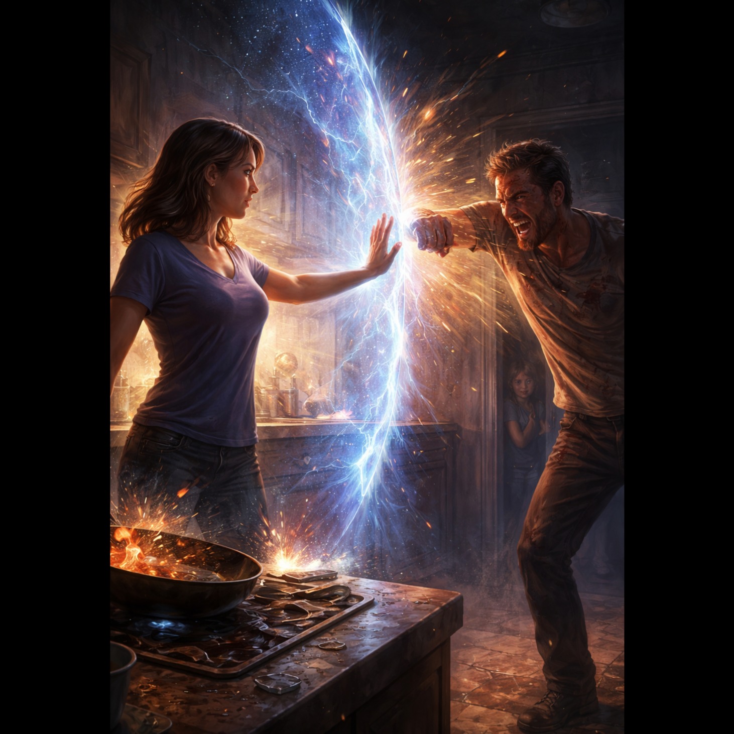 Мрачная, кинематографическая баллада для музыкального театра с нарастающим оркестровым напряжением, Темп ~64 удара в минуту, минорная тональность, Интимный женский вокал (мягкий, сдержанный → дрожащий → мощный), Скупое фортепианное вступление, низкие струнные, едва уловимые эмбиентные дроны, отдаленные металлические пульсации, Постепенное нарастание с глубокими виолончелями, драматическими ударами перкуссии и хоровыми партиями в припеве, Тема: домашнее насилие, невидимый щит, защита, пробуждение силы, тихая справедливость, Структура: фортепианное вступление → напряженный куплет → взрывной припев → хрупкий бридж → финальный сильный, но спокойный припев, затухающий в тишине