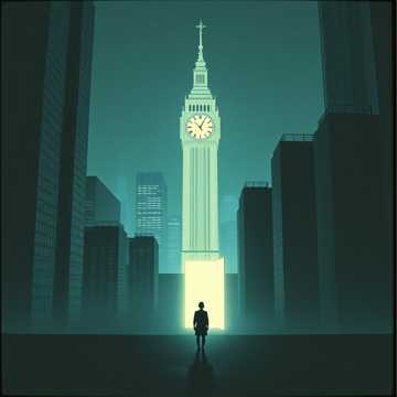 Dark dramatic musical monologue, cinematic techno-orchestral tension blended with emotional stage ballad, Tempo ~68 BPM, minor key, slow pulse, deep synth drones, distant piano, low strings, subtle electronic percussion growing to powerful chorus with choir pads, Male vocal, intimate → тревожный → пророческий, Theme: конец эпохи, «Стена Бога», ощущение суда над человечеством, тикающее время, страх и надежда, Structure: intro ambience → verse storytelling → rising chorus → quiet bridge → final emotional chorus, fading into echoing clock ticks
