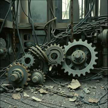 dark deep gritty male vocals no vibrato, industrial, dark ambient, cinematic, dark electro, industrial rock, soundtrack, driving arpeggios, haunting piano, Inception horn