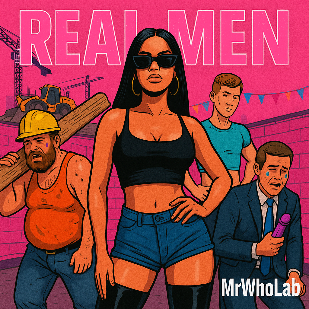 🔥 Hard-hitting reggaeton track infused with dembow and dancehall beats, Female vocals in Spanish and English with bold, satirical, and highly sexualized delivery, The lyrics are provocative, ironic, and socially defiant, mixing feminist fire with explicit humor, The rhythm is raw, percussive and body-focused, with a hypnotic dembow groove, heavy basslines, and dancehall-inspired drops, Vocals alternate between sensual melodic phrases and aggressive rap flow, The atmosphere is club-ready, rebellious and in-your-face — like a dancefloor manifesto of lust and power