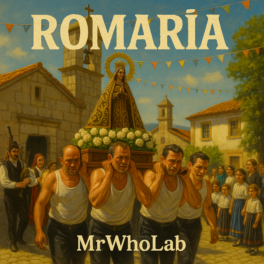 A dark, high-energy fusion of rave and witch house with traditional Galician bagpipes (gaita galega), distorted basslines and slowed-down trap-inspired beats create a haunting atmosphere, layered with eerie synths and ghostly textures, The gaita plays hypnotic, droning folk melodies, echoing through fog and reverb, The rhythm is intense and ceremonial, like a pagan rave under the moonlight, Female or androgynous vocals chant in Galician with occult overtones, blending ancient ritual with underground electronic power, A mystical, heavy, club-driven sound with deep ancestral roots