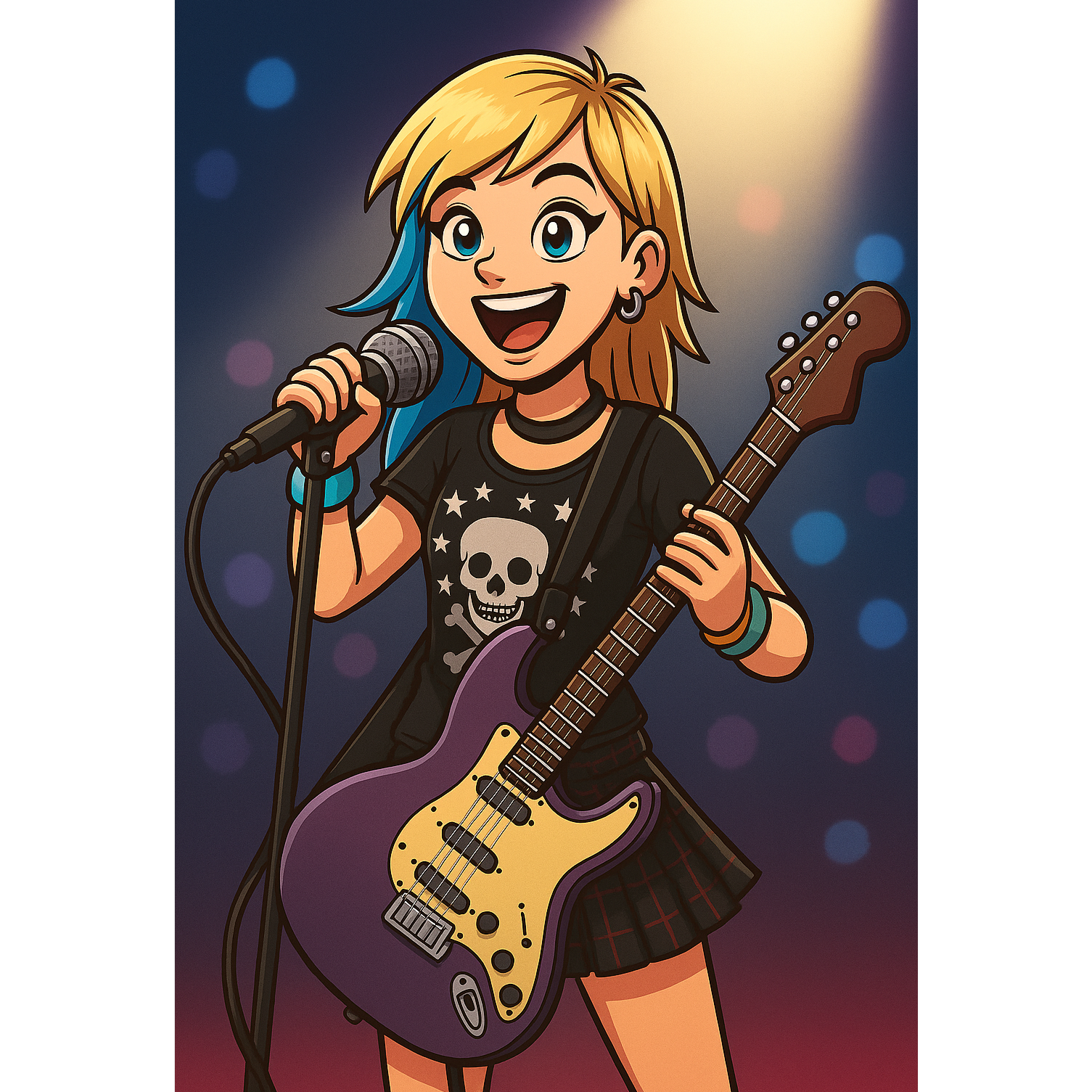 Energetic female pop-punk with bright melodic lifts, playful attitude, bouncy punk rhythms, catchy hooks, upbeat guitars, punchy drums, emotional edge, talk-singing moments, dynamic transitions, No artist references