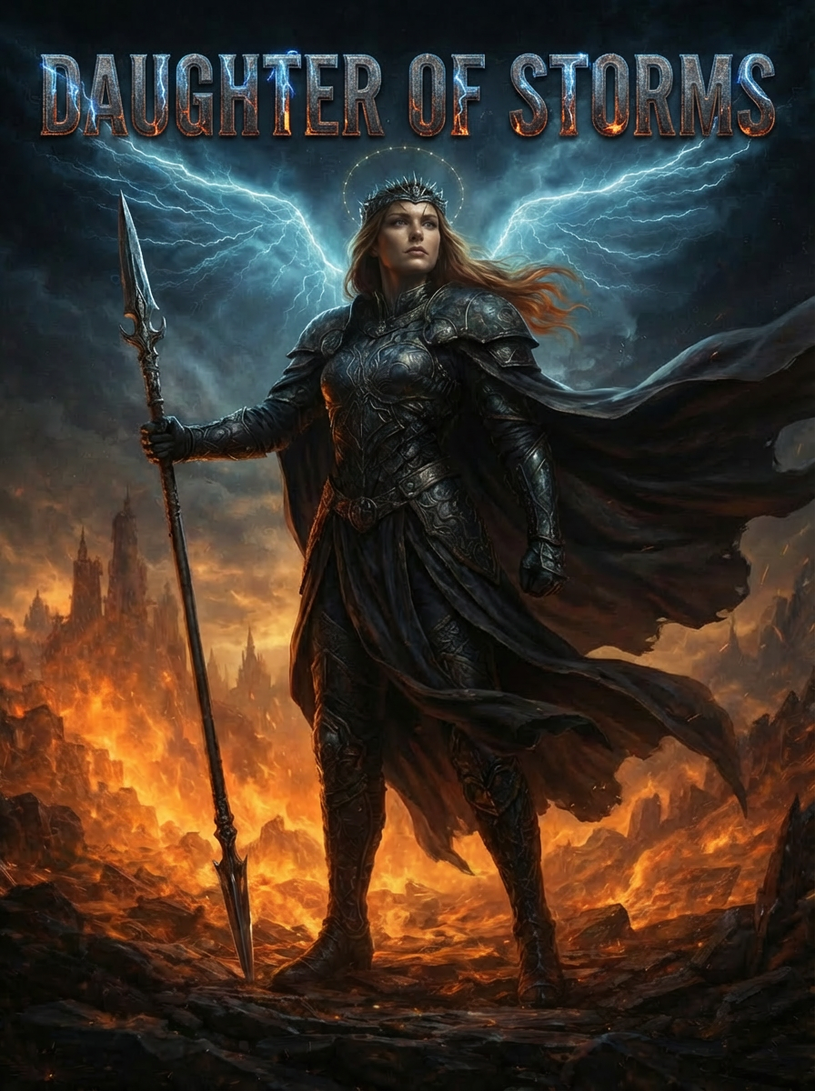 STYLE: cyber-valhalla war-anthem • cinematic dark popmetal with Viking energy • deep war drums, metallic synth hits, stormy atmosphere • chanting battle-choirs, thunderous low end • fierce but regal pacing • beauty and violence balanced through control • mythic warrior-queen aura, VOICE: powerful female vocal with natural grit and metallic resonance • steady, commanding tone like a war hymn • subtle rasp for tension • layered ghost-choir harmonies behind her lead • heroic, disciplined, forged-in-battle presence, female vocals