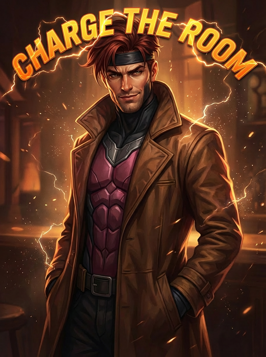 STYLE: High-energy EDM × Cajun house fusion, Bright accordion lead riffs chopped into rhythmic dance patterns, Punchy 4-on-the-floor kick, sidechained synth bass, stuttered accordion samples, and kinetic FX inspired by charged playing cards, Energetic build-ups with explosive drops, Slick modern house production with playful folk-accent flourishes, VOICE: Confident, smooth male vocal with a flirtatious Cajun edge, Slight grit, warm resonance, charismatic phrasing, Teasing delivery in the verses, bold and melodic in the chorus, Occasional rhythm syncopation to match the accordion grooves, VIBE: Neon bayou nightclub, Wildcard trickster energy, Flirty, chaotic, high-tempo swagger, Feels like Remy spinning through the smoke and lights, charging the dance floor with every step