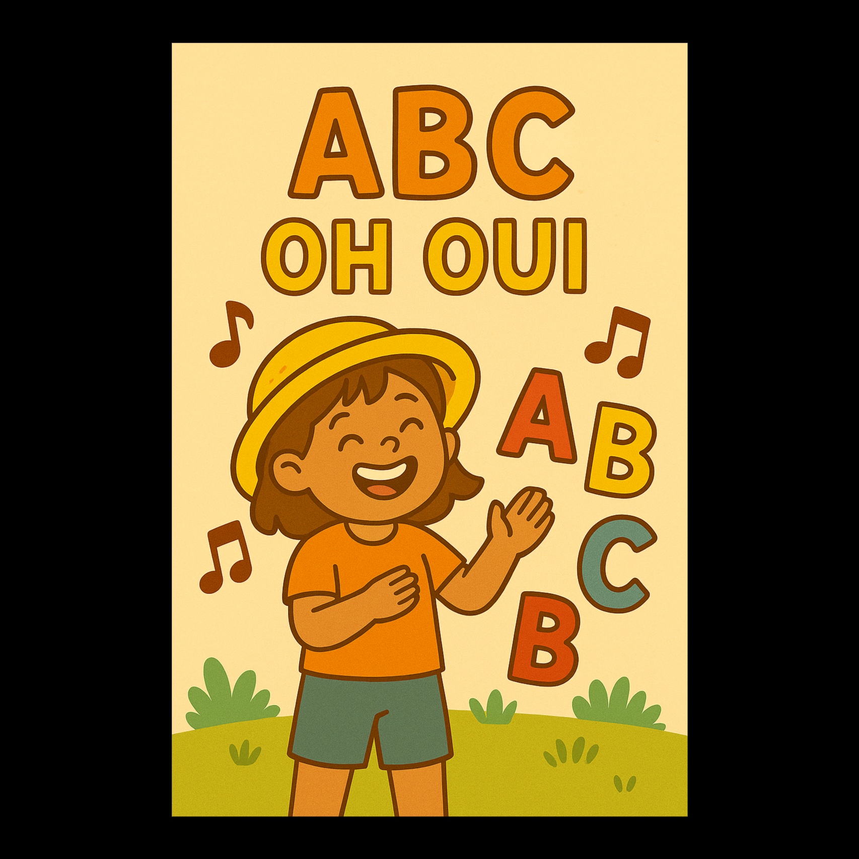Upbeat French children's pop opens with playful acoustic guitar and a catchy, cheerful xylophone hook, Handclaps and light drums establish a bouncy, major-key groove, Tambourine and bright violin add lively textures, while energetic flute phrases bring excitement, Sing-along sections drive joy, ‑no dark tones, ‑no heavy distortion, ‑no aggressive vocals, ‑no fast rap sections, ‑no minor key sadness, ‑no complex jazz chords, ‑no electronic synths, ‑no heavy bass drops
