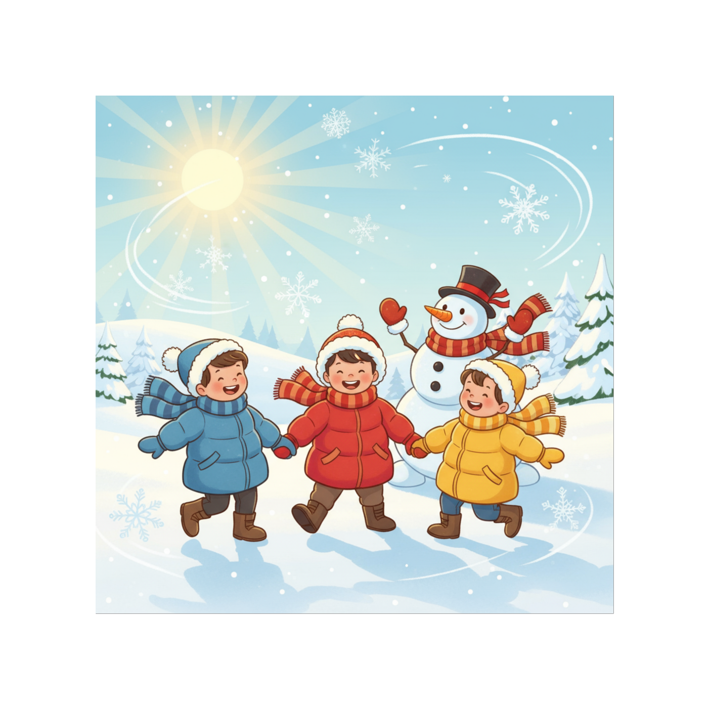 Chanson enfantine en Do majeur à 90 BPM : intro au ukulele doux aux motifs aériens, rejoint par un marimba léger et un glockenspiel pour la mélodie, Rythme feutré par shakers et claps mous, Voix féminine claire, diction lente, Refrains animés par des chœurs d’enfants en call-and-response, Pont chaleureux avec pads, rainstick, souffle rythmique, Textures évoluent du matin vers la nuit, Finale : ronde joyeuse, fondu doux, ‑Aucun EDM/dubstep, ‑pas de basses agressives, ‑pas d’autotune marqué, ‑pas de cris ni distorsions, ‑pas de percussions trop fortes, ‑pas d’effets sonores effrayants, ‑pas de thèmes sombres