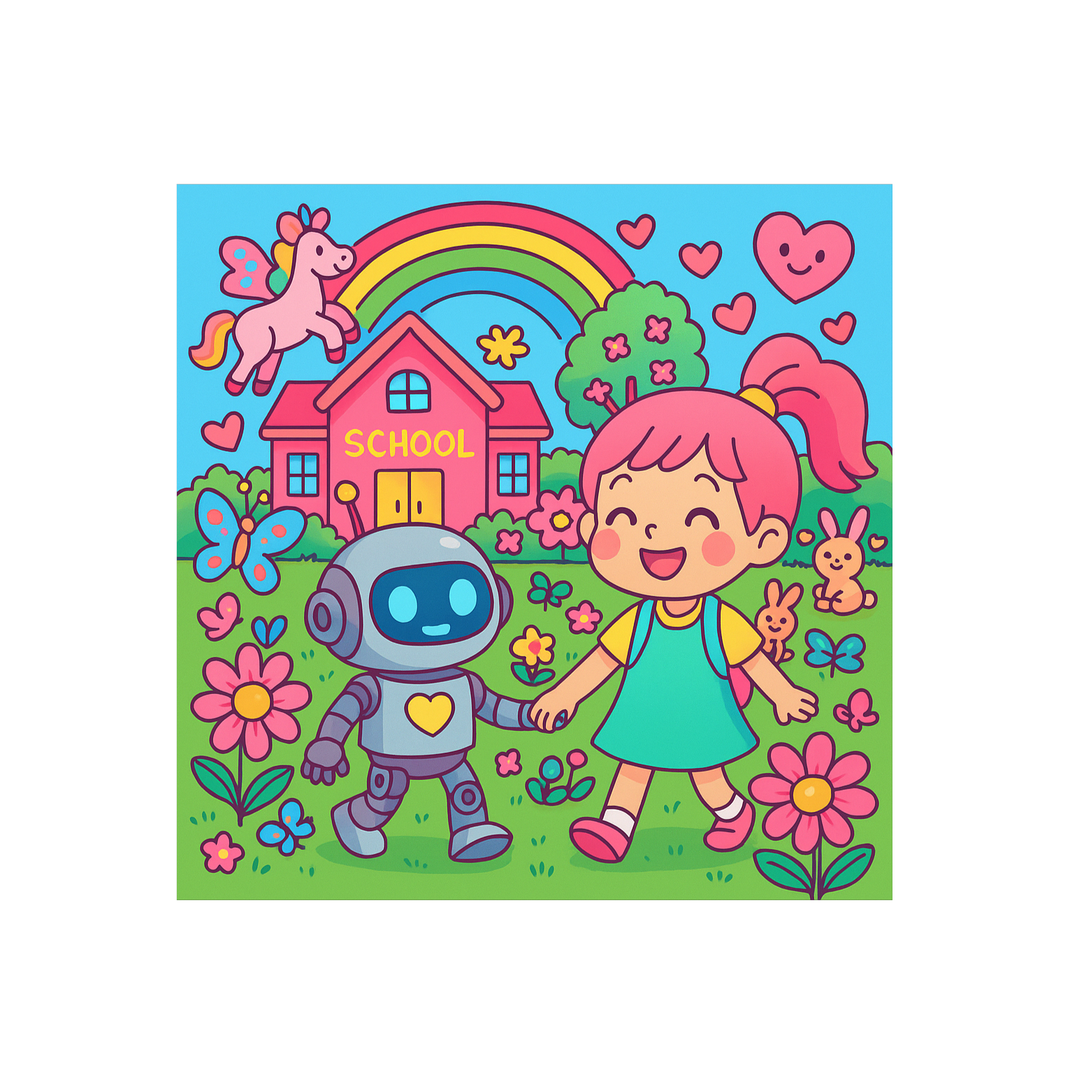 At 90 BPM, the song opens with a toy piano and soft synth bells, joined by dreamy pads and whispered ambient textures, Sweet female vocals lead the verses with delicate percussion and gentle electronic accents, The warm vocoder-robot harmonizes in choruses and the magical bridge, evoking playful childlike wonder, Windchime effects add sparkle, and the outro gently blends all elements, fading into enchanted lo-fi ambience, ‑No heavy bass, ‑no EDM drops, ‑no auto-tune, ‑no fast tempo, ‑no dark or melancholic atmosphere, ‑no harsh synths or glitch effects, ‑no adult lyrical themes, ‑Avoid loud vocals or dramatic changes in dynamics