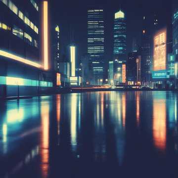 Create a dark, noir-inspired, electronic music track with a futuristic and dystopian feel, Incorporate the sound of rain