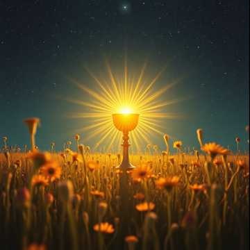 Atmospheric synths, classic 1980s rock anthem; bright countertenor male vocals; shimmering guitars, wide stereo pads, reverb drums, Tone: radiant and grateful—celebrating the poor as the living jewels of faith