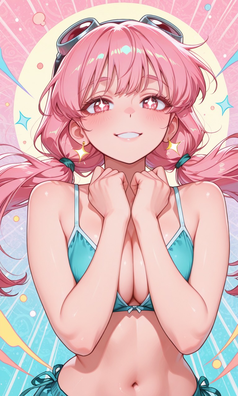 Electro Swing as the core genre, funk and city pop harmony and groove, hyperpop-level loud and aggressive production, 128 BPM, heavy swing feel with club drive, funky electric guitar with city pop chords, slap bass layered with extremely boosted sub bass, huge sidechained low end, club-shaking bass, bright swing brass hits and jazzy accents, disco-style drums reinforced with modern club kick, glitchy hyperpop synths and noisy FX, sweet but wild mood, neon city night meets chaotic club energy, cute and confident female vocal, playful fast rap delivery with crystal-clear pronunciation, Japanese-English mix (mostly Japanese), extreme loudness, compressed and saturated, but vocals stay front and clear, festival and nightclub ready electro swing anthem