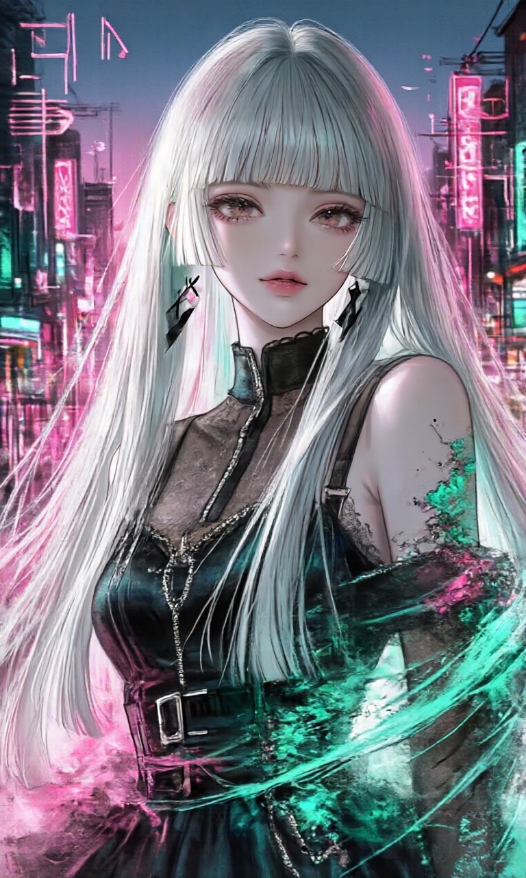 Dark electro swing fused with city pop, dream pop, denpa, and death metal, Theme: neon nightlife glamour hiding danger and decay, Female denpa-style vocal — whispery, detached, cute yet eerie, Sudden death metal screams for violent contrast, Swing-driven groove, modern electronic bass, Minimal jazz brass, glossy city pop chords, hazy textures, abrupt distorted metal riffs, Stylish, avant-garde, cinematic urban noir, Dramatic, soulful, elegant, dangerous — but catchy
