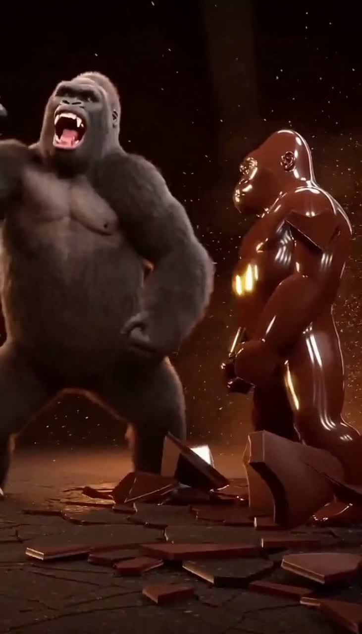 Electro Swing, Jungle, Djent, Screamo, aggressive and happy, primal but controlled, tight and groovy jungle breakbeats, 8-string djent guitars tuned very low, savage palm-muted chugs, percussive and physical, animalistic rhythm-focused guitar playing, short violent bursts of guitar energy without overpowering the groove, no flashy solos, no technical showing off, guitars feel like raw muscle and body weight, minimal swing brass stabs used extremely sparingly as subtle accents, gigantic gorilla male vocals, extremely low-pitched growls, feral roars, joyful primal screams, breath-heavy, chest-driven, wild and untamed vocal texture, slightly slurred, instinctive vocal phrasing, clean but massive low end, groove-first arrangement, controlled chaos with strong physical impact, Valentine theme as oversized primal love, BPM around 160–175, festival-ready energy, violent joy, wild yet accessible