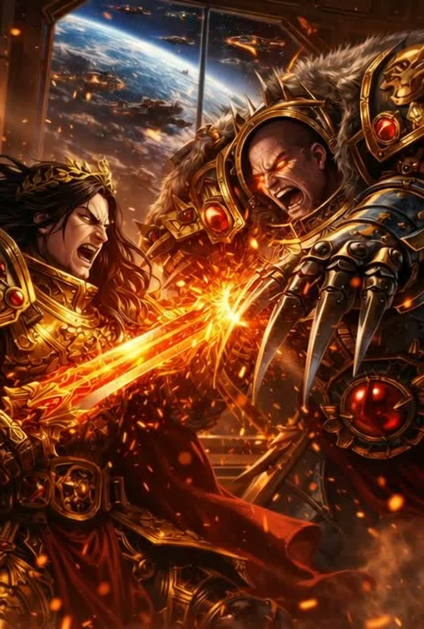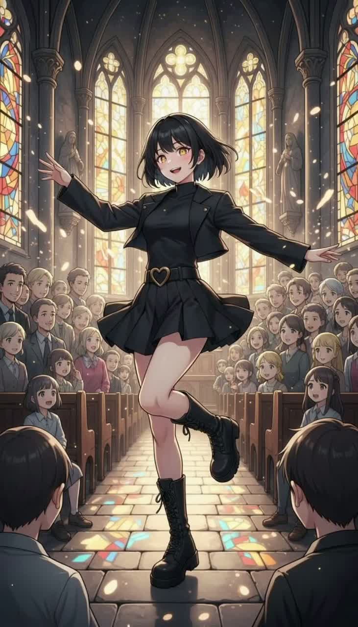 A 170 BPM modern melodic power metal anthem of 4-5 minutes length fused with โ80s eurodance and synthwave, built on galloping rhythm guitars, tight palm-mutes, and bright harmonized leads, Punchy double-kick and big snare drive the energy, while retro arpeggiator synths, cinematic pads, and fleeting neon-console sparkle fill the wide stereo field, Verses start intimate with range-shifting soaring power metal vocalsโairy falsetto, clean highs, belted peaksโbuilding tension, The chorus erupts with massive, multi-tracked vocal stacks, gang shouts, and lush cathedral reverb, amplifying triumphant drama, The glossy, spacious mix boasts long reverb on choirs and crystal clarity throughout